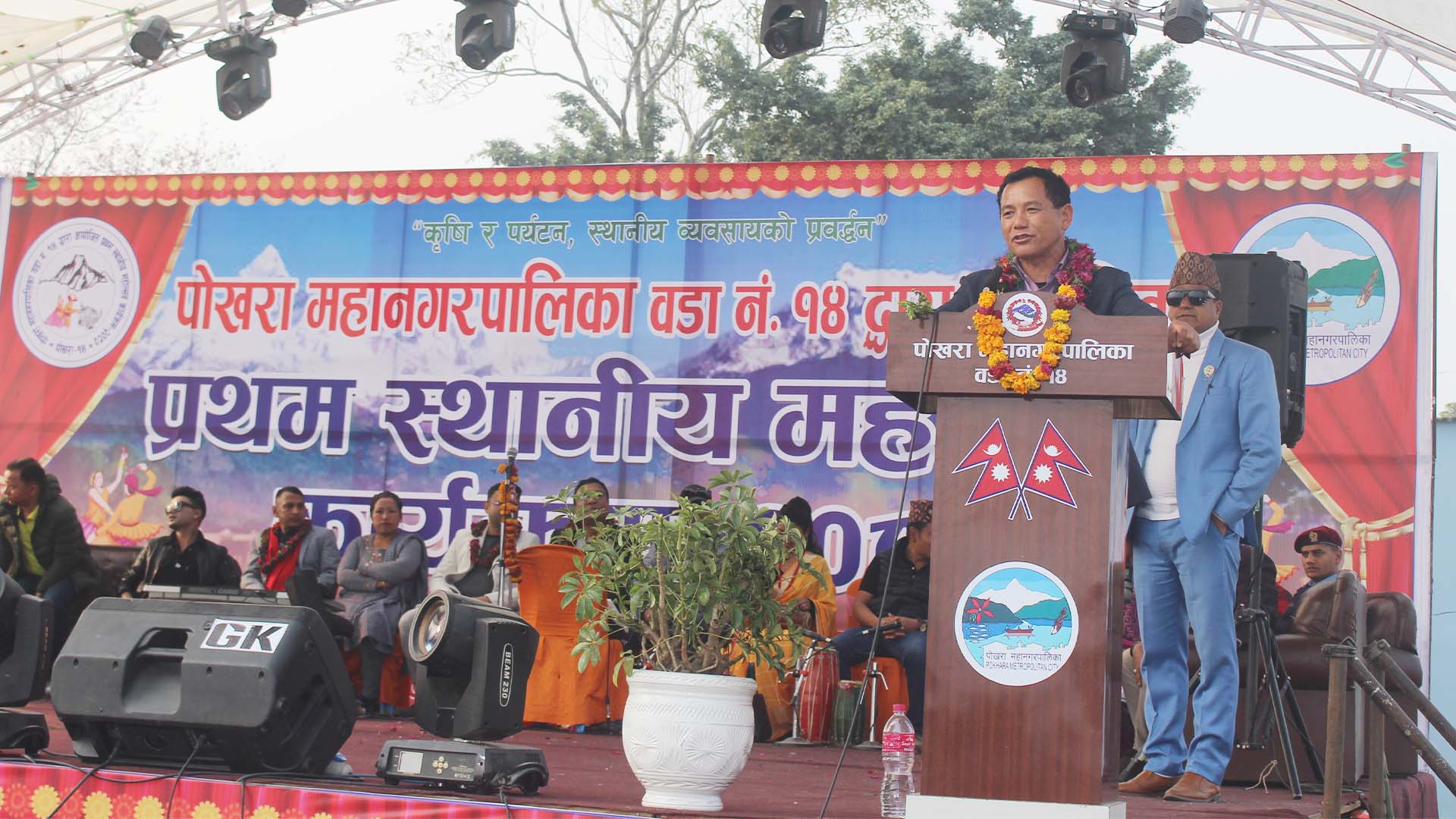 पोखरा महानगरपालिका–१४ वडा कार्यालयको आयोजनामा ‘कृषि, पर्यटन, स्थानीय व्यवसायको प्रवद्र्धन’ भन्ने मुल नारासहित प्रथम स्थानीय महोत्सव सम्पन्न भएको हो ।