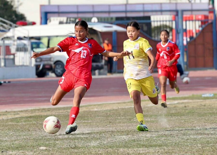 सोमबार नै भएको दोस्रो खेलमा घरेलु टोली नेपालले भुटानलाई २–१ ले पराजित गर्यो । पहिलो खेलमा भारतसँग पराजित नेपालले दोस्रो खेल जितेसँगै फाइनल पुग्ने आशा बाँकी छ । पहिलो खेलमा नेपाल भारतसँग १–० ले पराजित भएको थियो । नेपालका लागि सिर्जना बडुवालले ३५ औं मिनेटमा गोल गर्दै खाता खोलेकी थिईन् । मैदानको बायाँ साईडबाट पेनाल्टी बक्स बाहिरबाट हानेको उनको प्रहार सिधै गोलमा परिणत भएको थियो । ६९ औं मिनेटमा नेपालले अग्रता दोब्बर बनायो । यसपटक प्रजिता राईले वान टच प्रहार गर्दै जाली चुमाईन् । भुटानका लागि सोनाम छेदेनले गोल गर्दै गोल अन्तर कम गरेकी थिईन् । उनले खेलको ८७ औं मिनेटमा गोल गर्दै बराबरी गर्ने आशा जिवित राखेपनि त्यसपछि थप गोल गर्न नसक्दा प्रतियोगिताबाटै बाहिरिएको छ ।