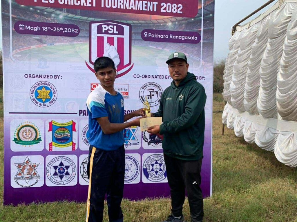 सो खेलमा ५ विकेट लिएका बिजयी वाराहीका खेलाडी विवेक सुनार प्लेयर अफ द म्याच घोषित भए ।